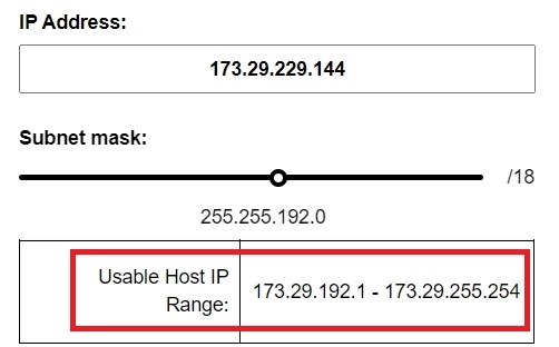 Which of the following is the correct usable host range of 173.29.229.144/18?